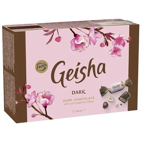 Мы выбрали 10 лучших цен на Конфеты Fazer Geisha Dark темный шоколад с нежной ореховой начинкой, 150 г (из Финляндии). Перед тем как купить Конфеты Fazer Geisha Dark темный шоколад с нежной ореховой начинкой, 150 г (из Финляндии) посмотрите найденные предложения из Яндекс Маркета и других сайтов на основе XML фидов.