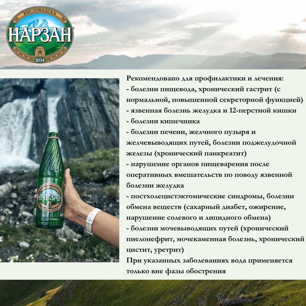 Минеральная лечебно-столовая вода Нарзан натуральной газации, стекло