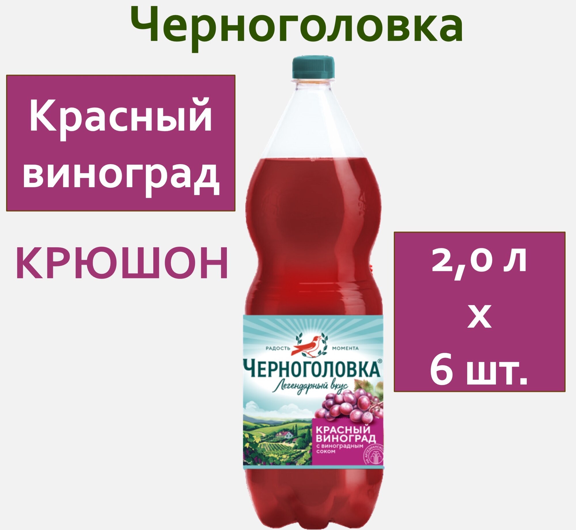 10 цен на Лимонад Черноголовка Красный виноград (Крюшон) 2,0 л х 6 бутылок, пэт