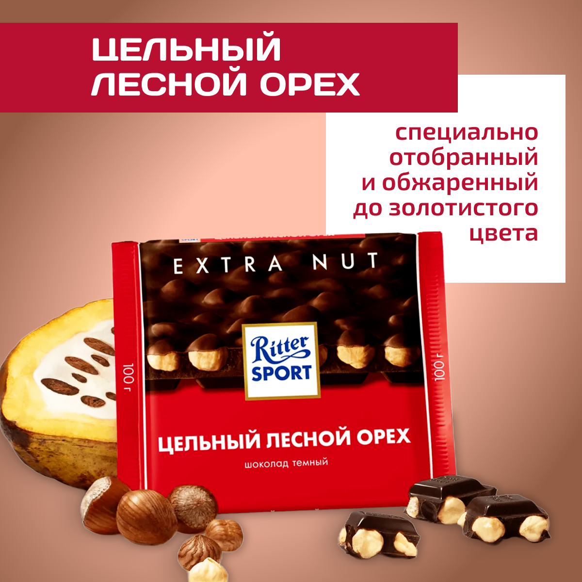 Шоколад Ritter Sport Extra Nut темный цельный лесной орех, 100 г, 10 уп.