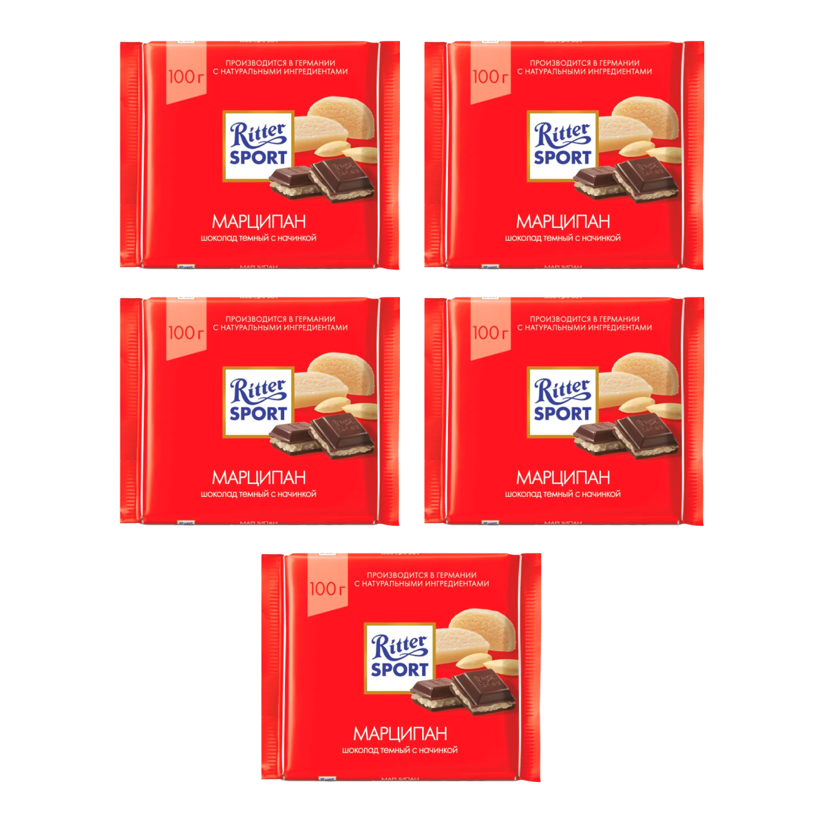 10 цен на Шоколад горький Ritter Sport с марципаном 5 шт по 100 г