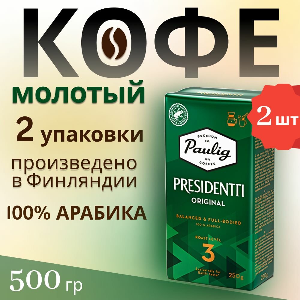 10 цен на Кофе молотый арабика натуральный Paulig Presidentti Original (Обжарка №3), 2 шт по 250 гр