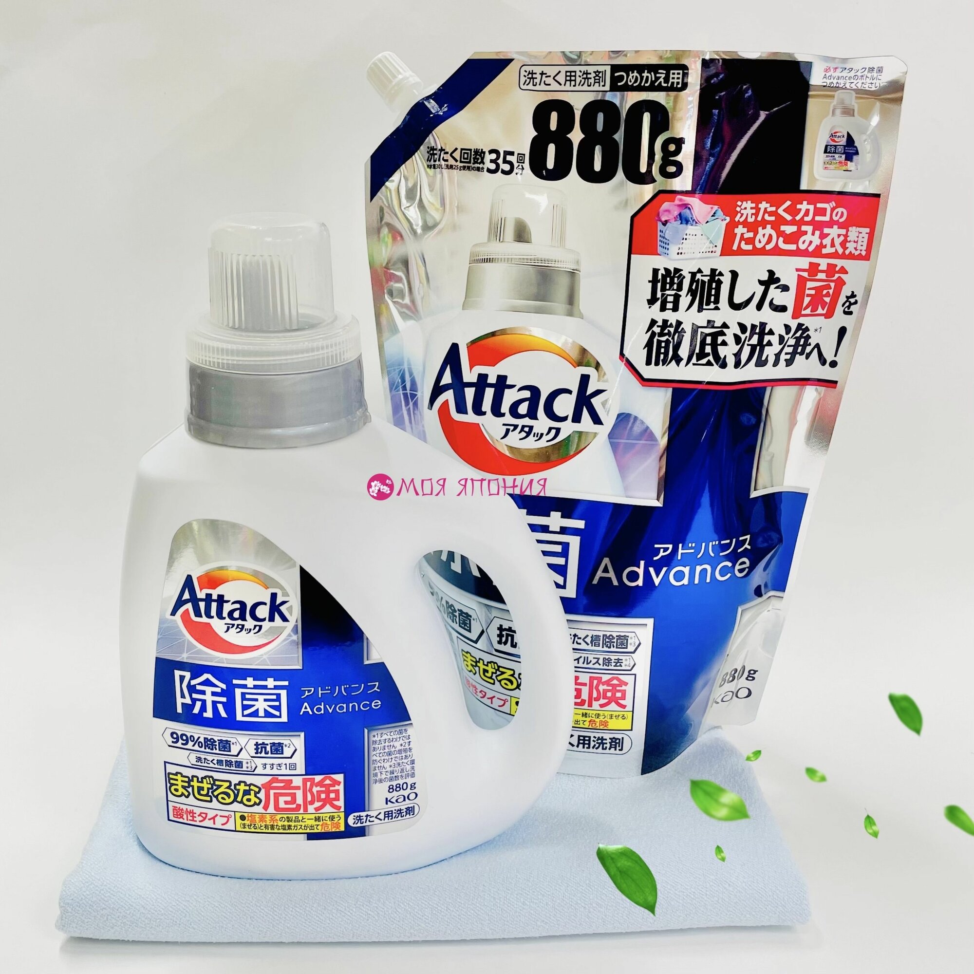 KAO Японский гель для стирки Attack Antibacterial Advance, с максимальным стерилизующим и дезодорирующим эффектом, с ароматом трав, 880 мл. информация: