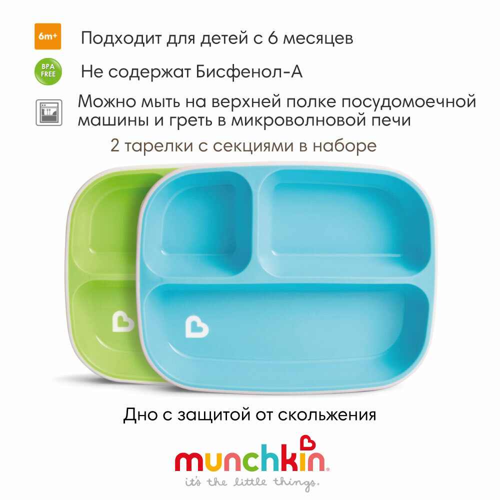 Munchkin набор тарелок секционных Splash™ 2шт. 6+, светло-голубой, светло-зеленый информация: