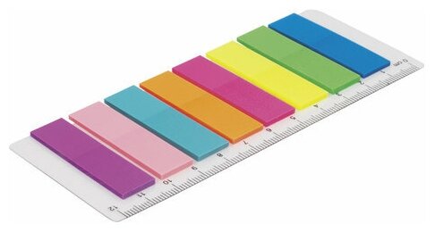 Закладки клейкие неоновые BRAUBERG, 45х12 мм, 200 штук (8 цветов х 25 листов), на пластиковой линейке 12 см, 126700, 126700 418 ₽