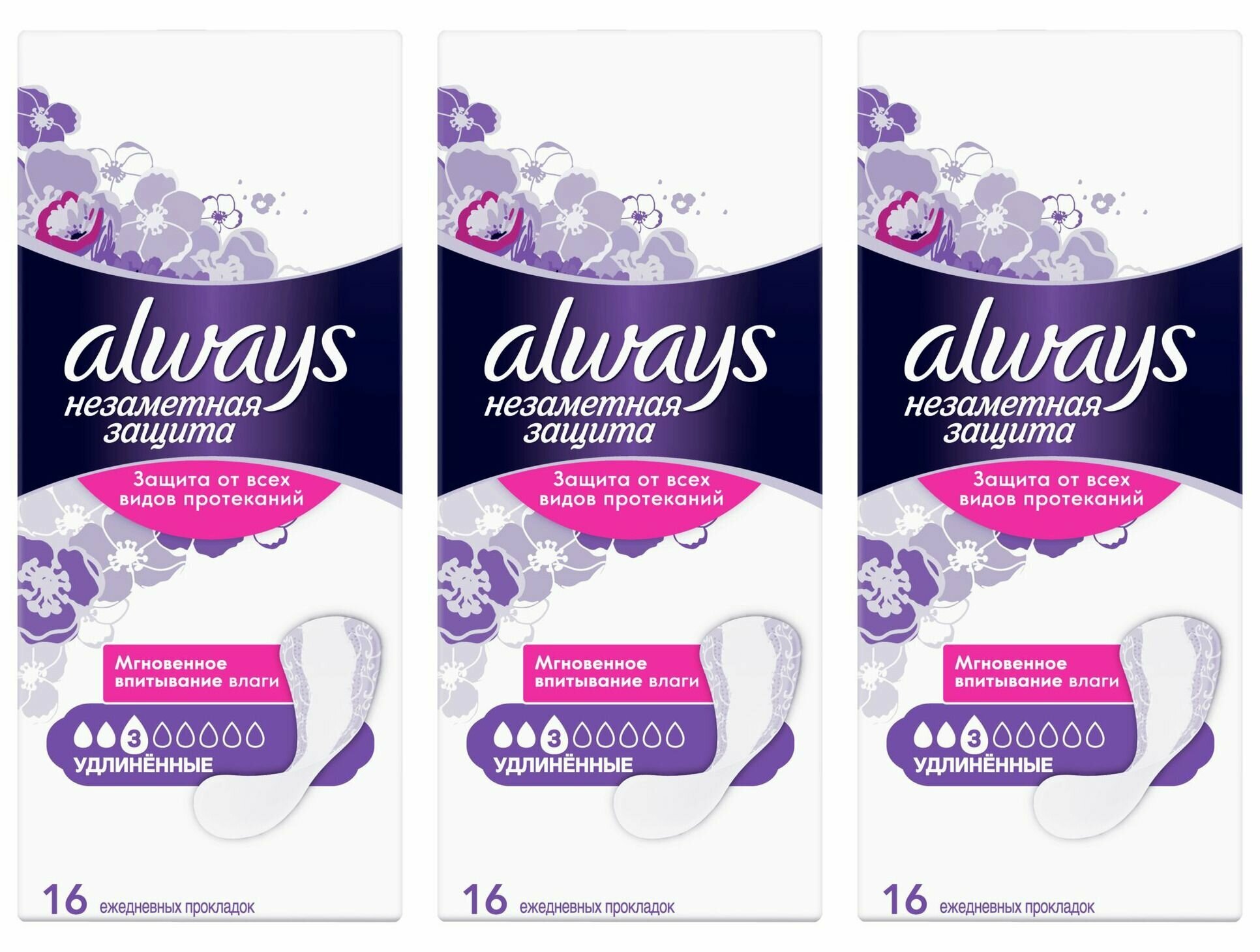 Always Ежедневные прокладки Незаметная защита, Удлиненные, 16 штук в упаковке, 3 уп