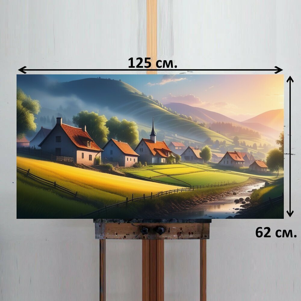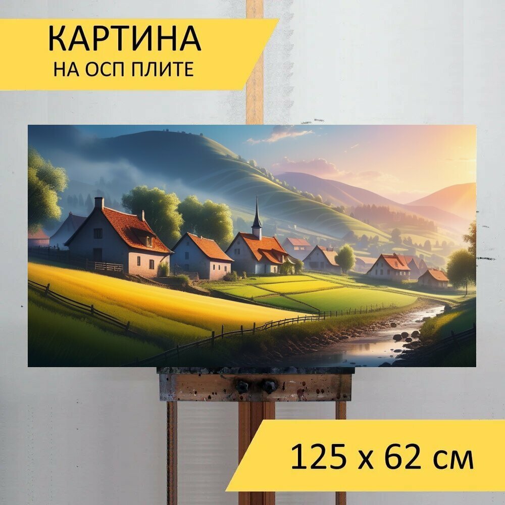 Картина на ОСП "Рисунок пейзаж с деревней красивый, " 125x62 см. для интерьера на стену информация: