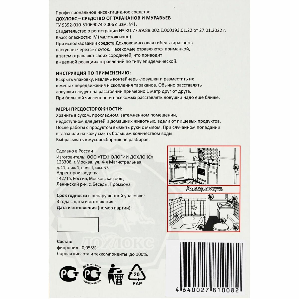 Дохлокс 4+1 ловушки и гель для быстрого уничтожения тараканов информация: