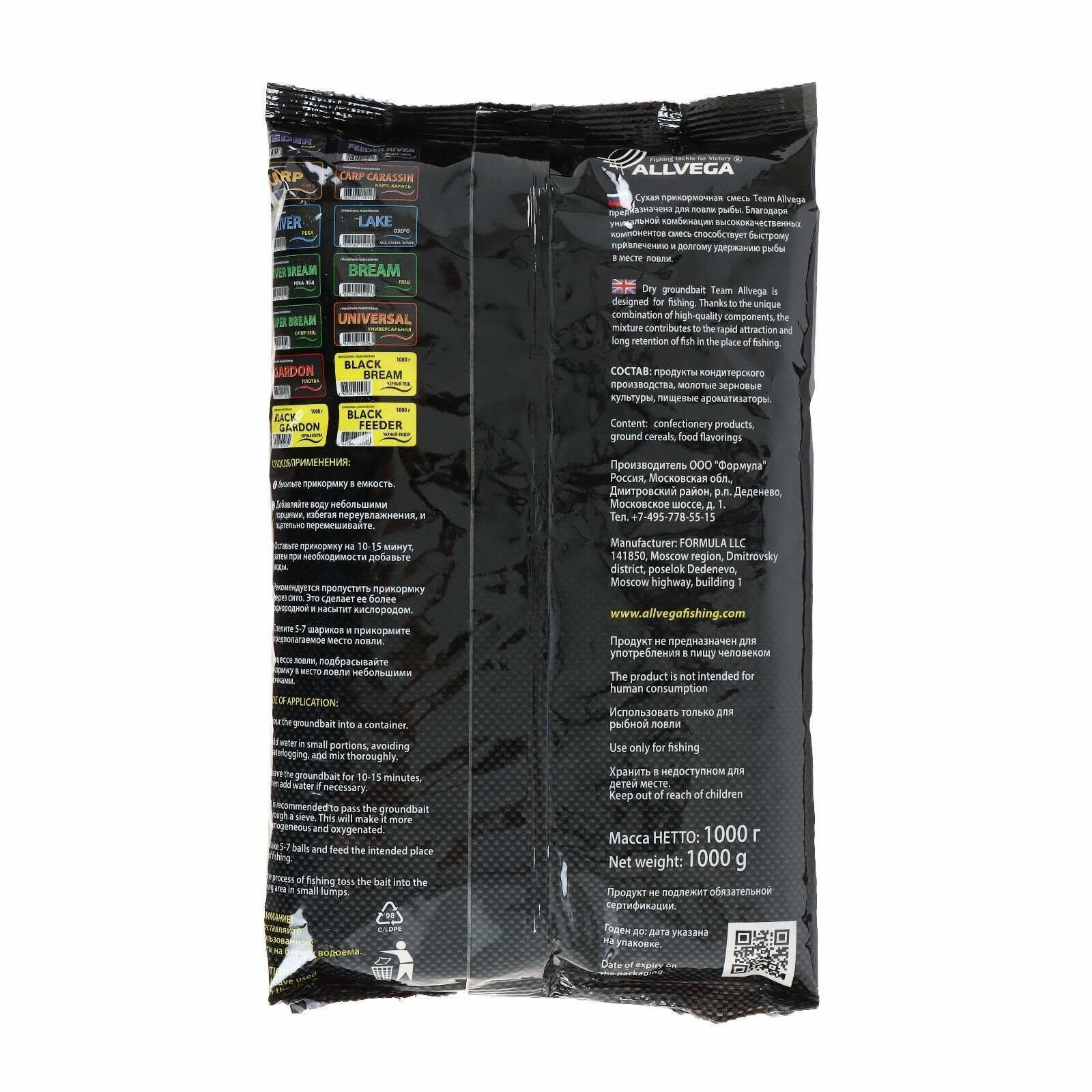 Прикормка ALLVEGA "Team Allvega Black Feeder" (черный фидер) 10 пакетов по 1кг. 2 100 ₽
