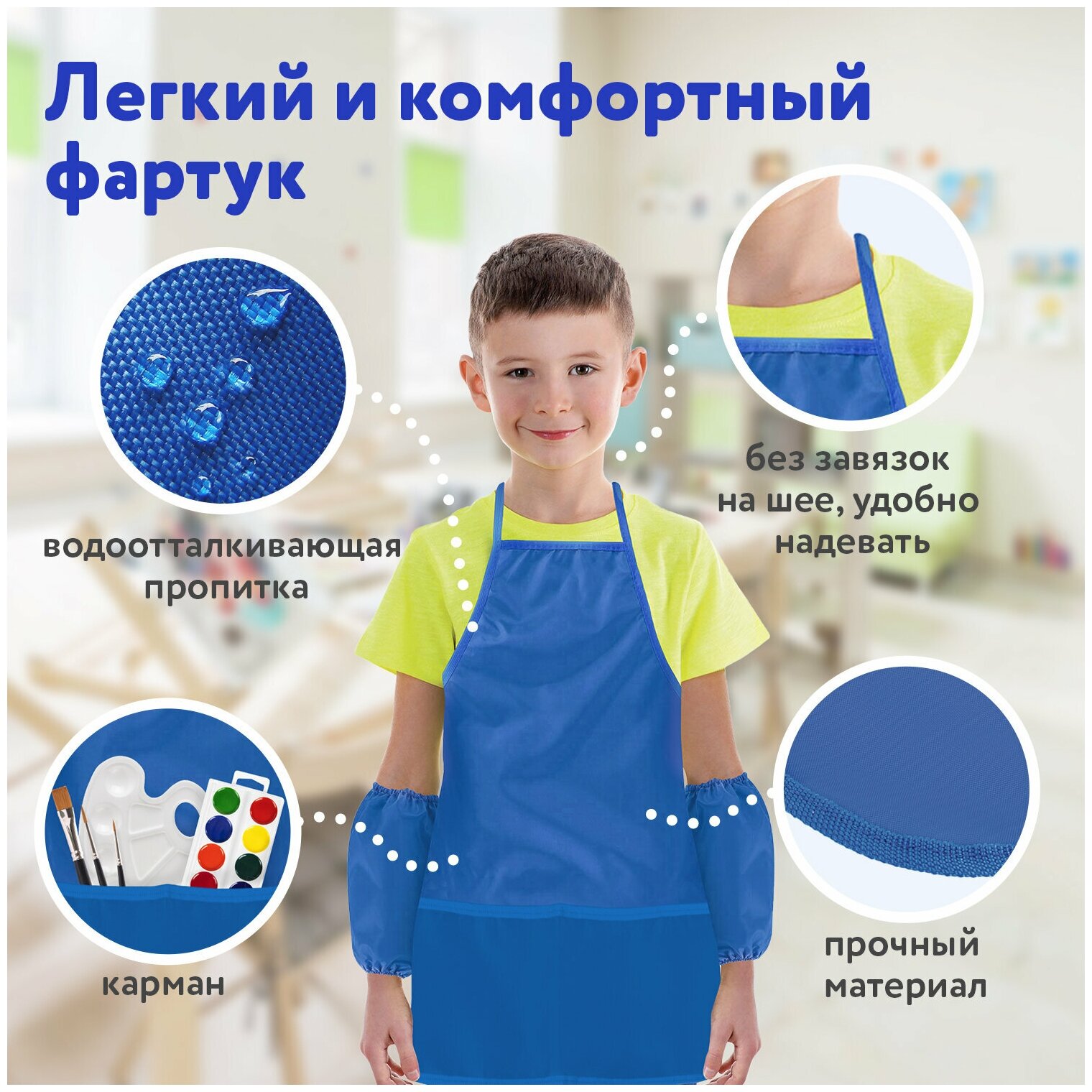 Отзывы на Набор для уроков труда Пифагор, клеенка Пвх, накидка фартук с нарукавниками, синяя, 227060