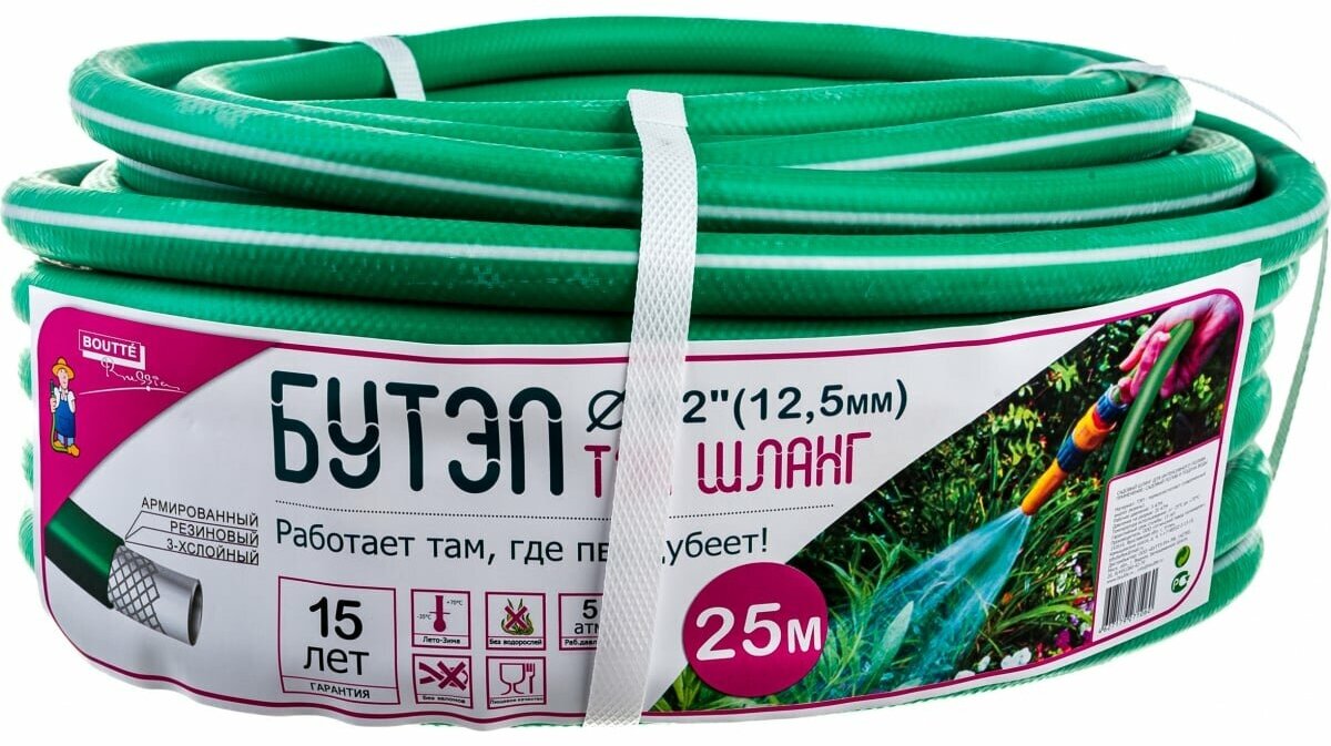 Шланг поливочный 1/2 25 м трехслойный Boutte (7762941) 4 574 ₽