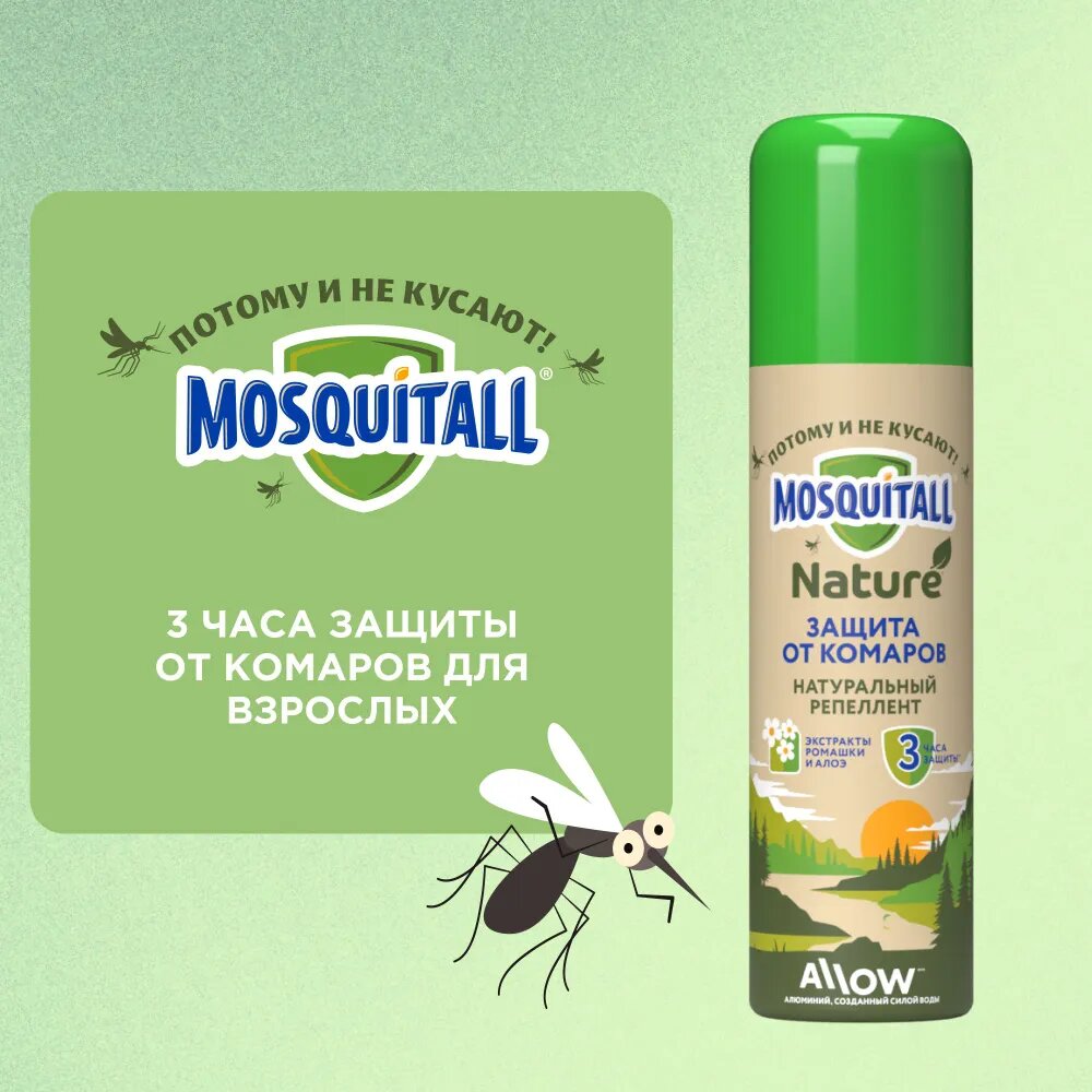 10 цен на Аэрозоль Mosquitall Натуральная защита от комаров (экстракты ромашки и алоэ), 150 мл
