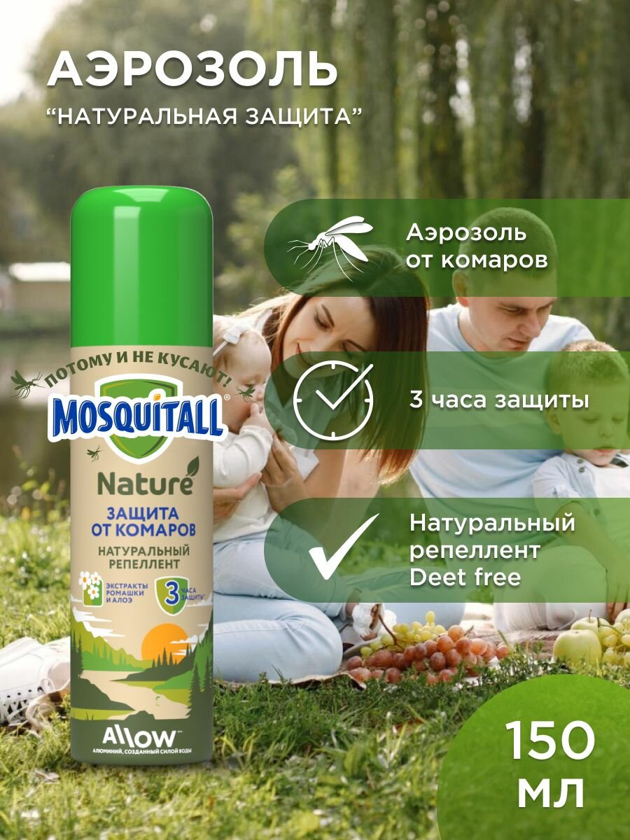 Аэрозоль Mosquitall Натуральная защита от комаров (экстракты ромашки и алоэ), 150 мл информация: