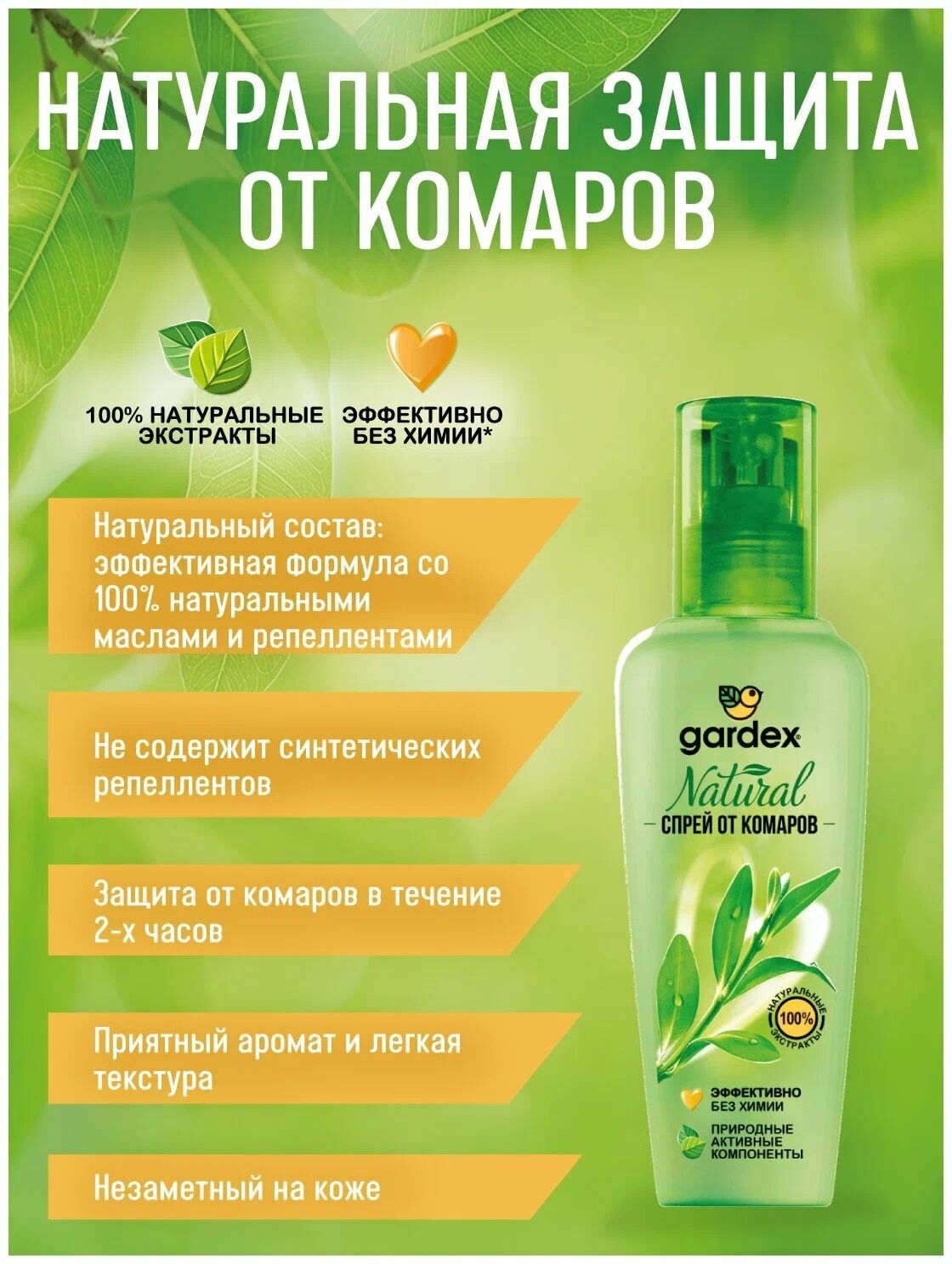 Спрей Gardex Natural от комаров на натуральной основе, 140 г, 110 мл, зелeный, 3 шт информация: