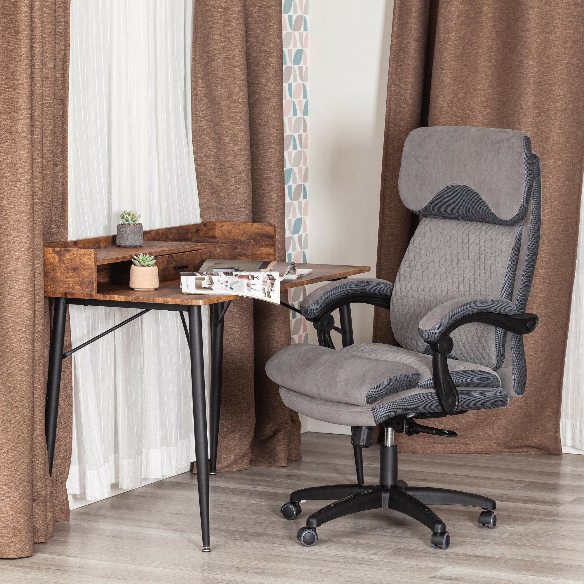 Кресло компьютерное Tetchair CHIEF, флок/ткань, серый информация: