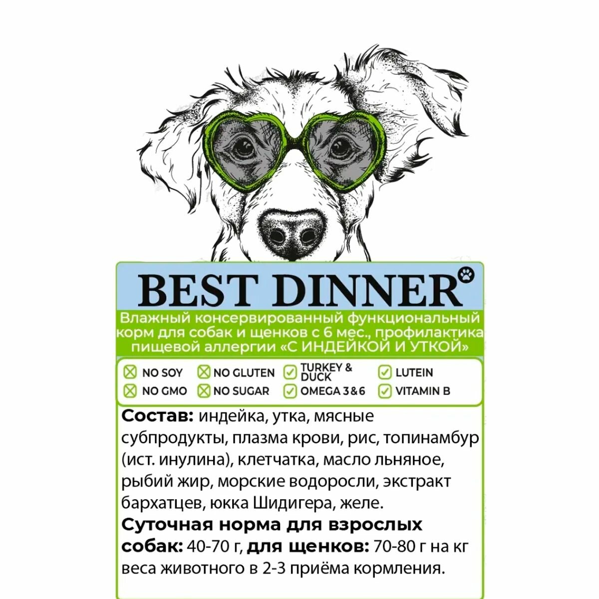 Best Dinner Exclusive Hypoallergenic консервы для собак при проблемах пищеварения с индейкой и уткой - 340 г х 6 шт