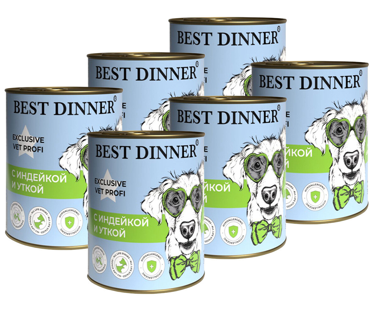 Влажный консервированный корм для собак Best Dinner Exclusive Vet Profi Hypoallergenic С индейкой и уткой, 340г х 6шт