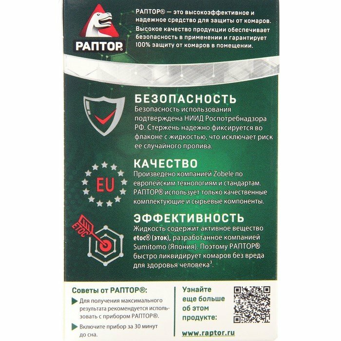 Отзывы на Жидкость от комаров, раптор, жидкость для фумигатора, повышенной эффективности, 30 ночей, 1шт