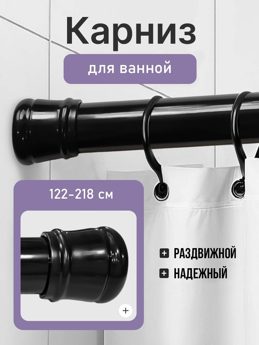 Карниз для ванной комнаты телескопический, 122-218 см, цвет чёрный 1 723 ₽