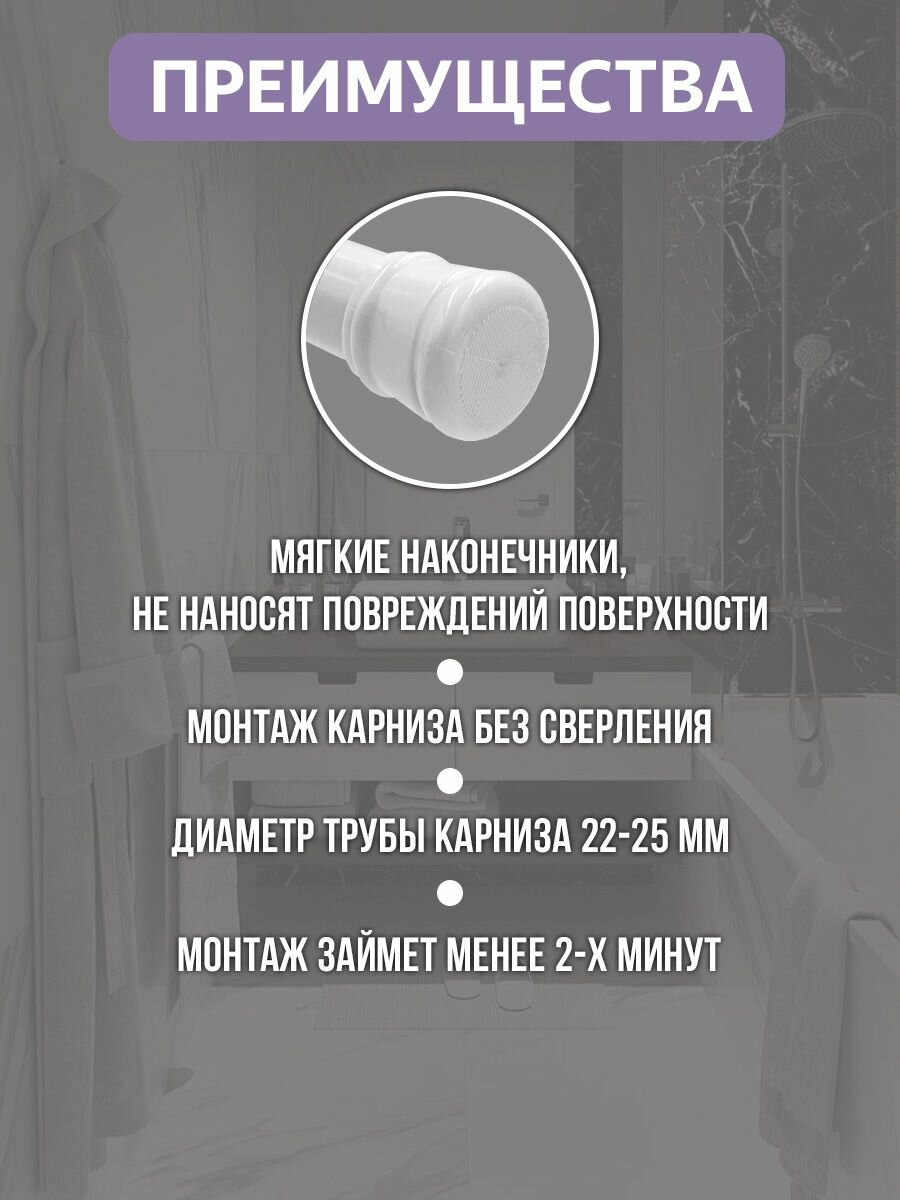 Карниз для ванной Bath Plus белый 120-218 см KK-004 / раздвижной/ Карниз для занавески в ванную комнату&металл