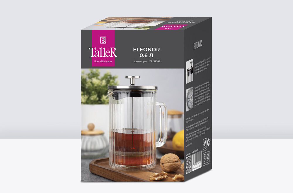 Френч-пресс TalleR TR-32342 Элеонор 600 мл, нержавеющая сталь, боросиликатное стекло 2 507 ₽