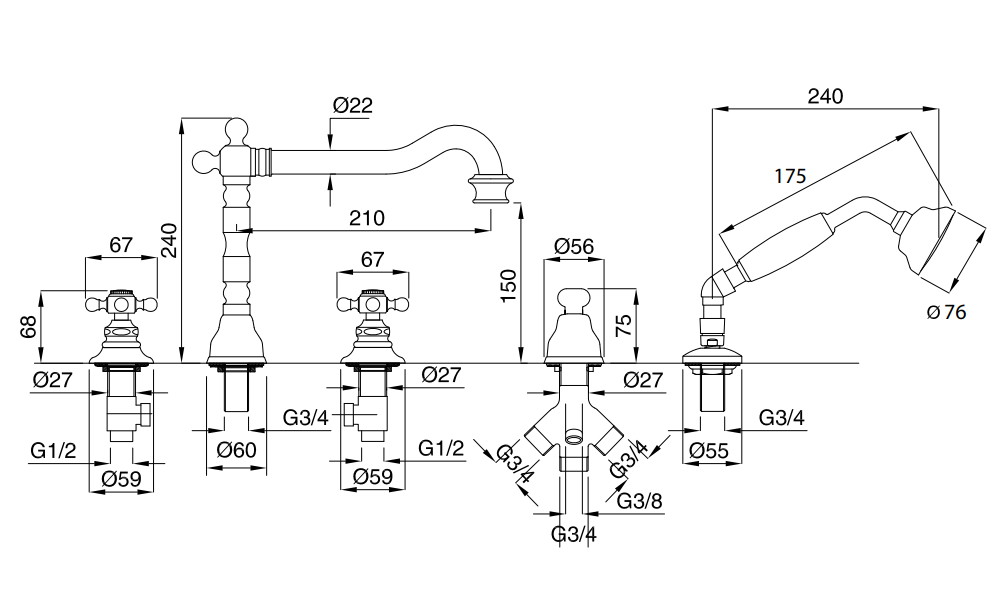 Смеситель на борт ванны на 5 отв. Migliore Arcadia ML.ARC-8380 хром информация:
