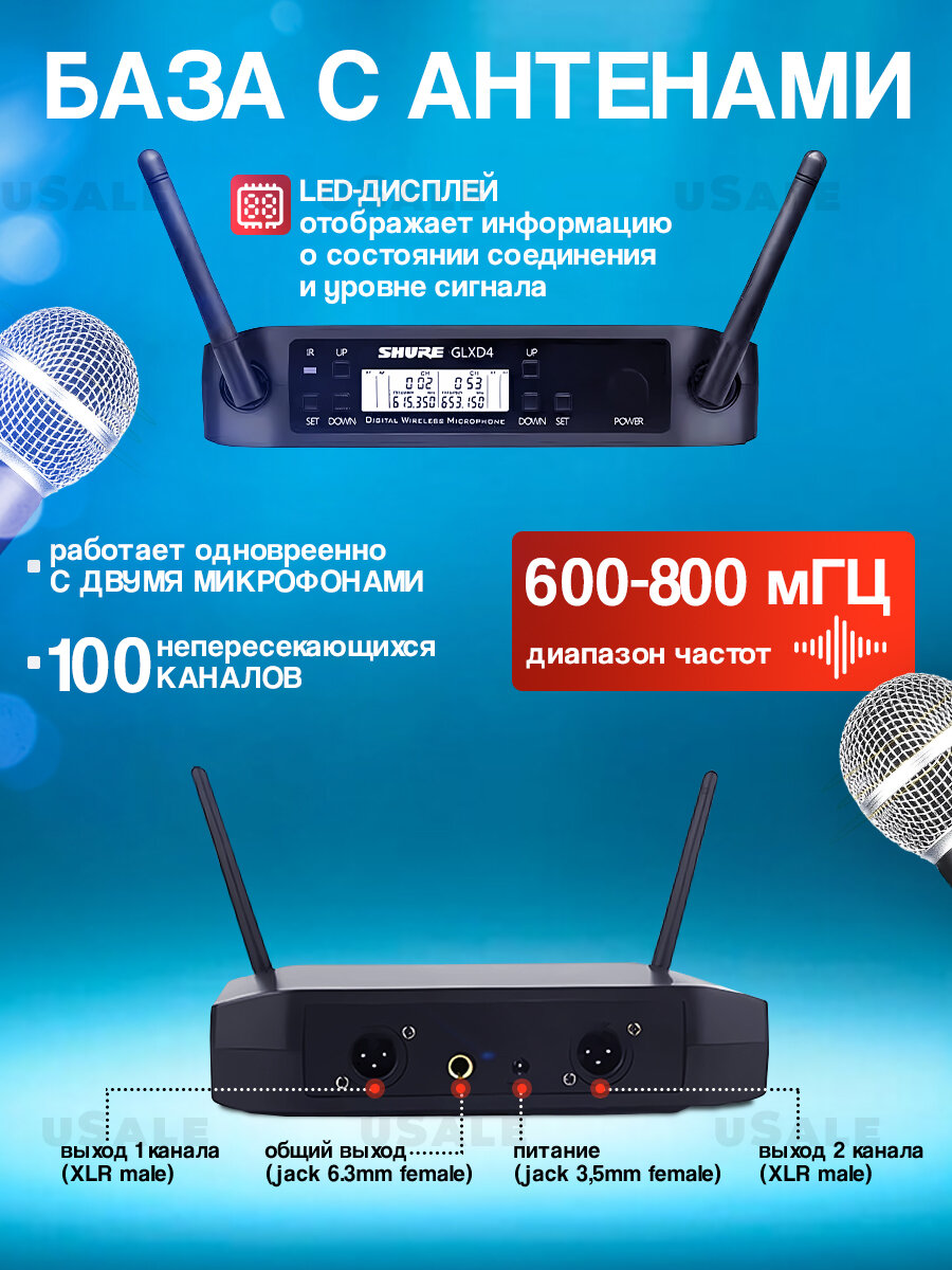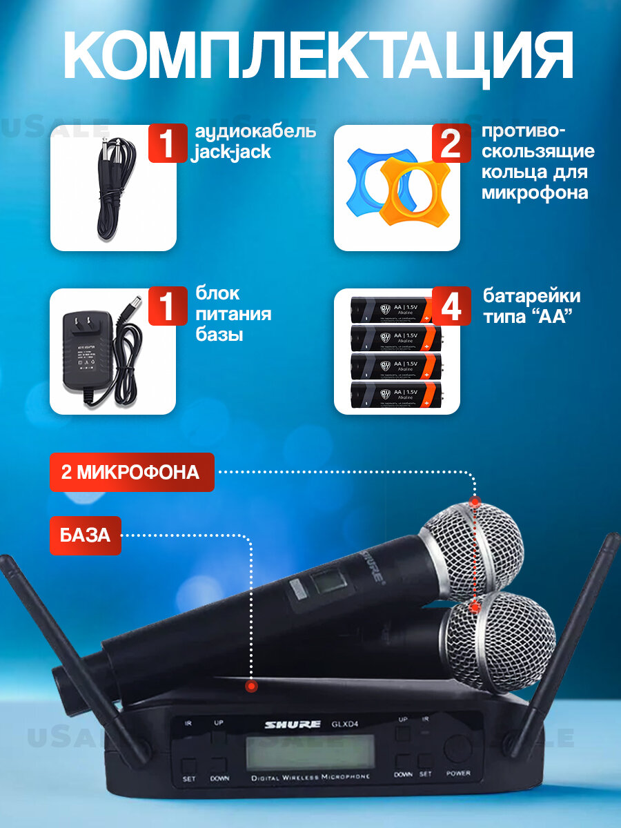 10 цен на Shure GLXD4 - беспроводной профессиональный микрофон для пения, караоке, мероприятий