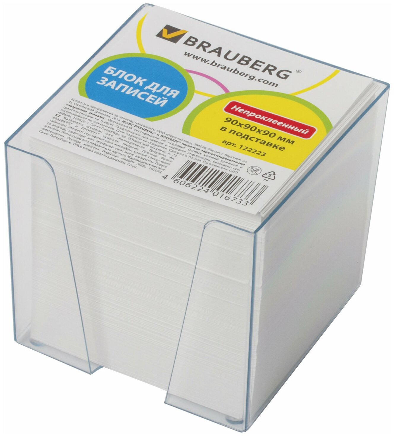 Блок BRAUBERG для записей в подставке прозрачной, куб 9х9х9 см, белый, белизна 95-98%, 122223
