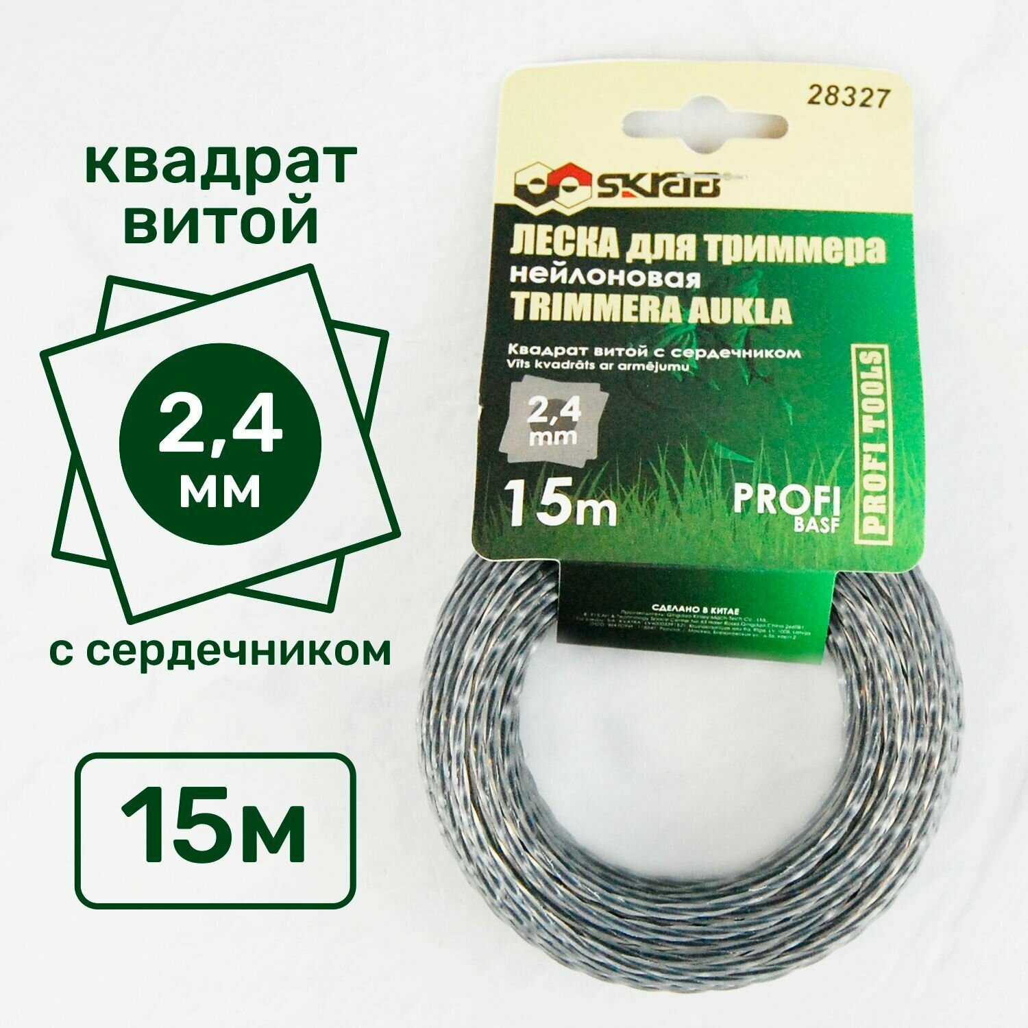Леска для триммера 2,4мм*15м витая/сердечник профи (Skrab) (Артикул : 28327)