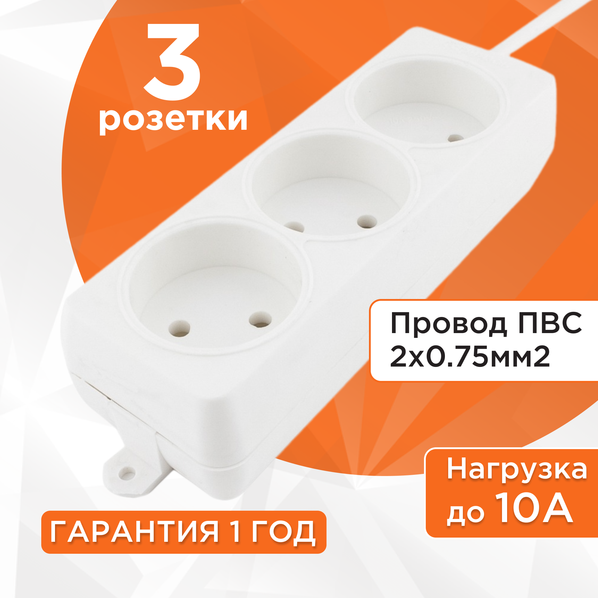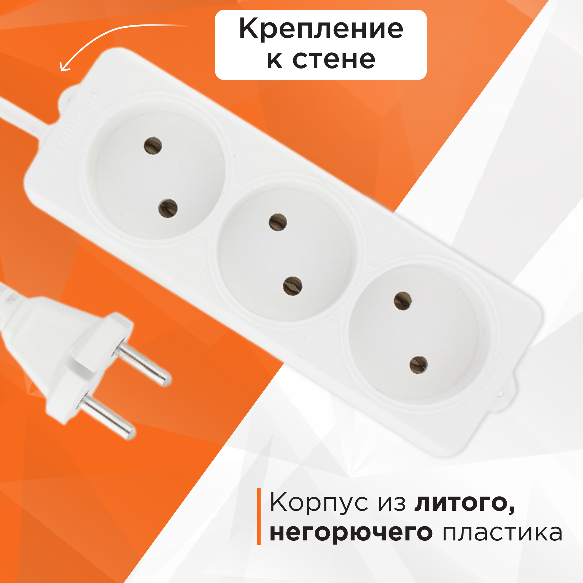 Удлинитель Гарнизон 3 розетки допустимый ток 10А, длина 5 метров. EL-NL3-W-5 815 ₽