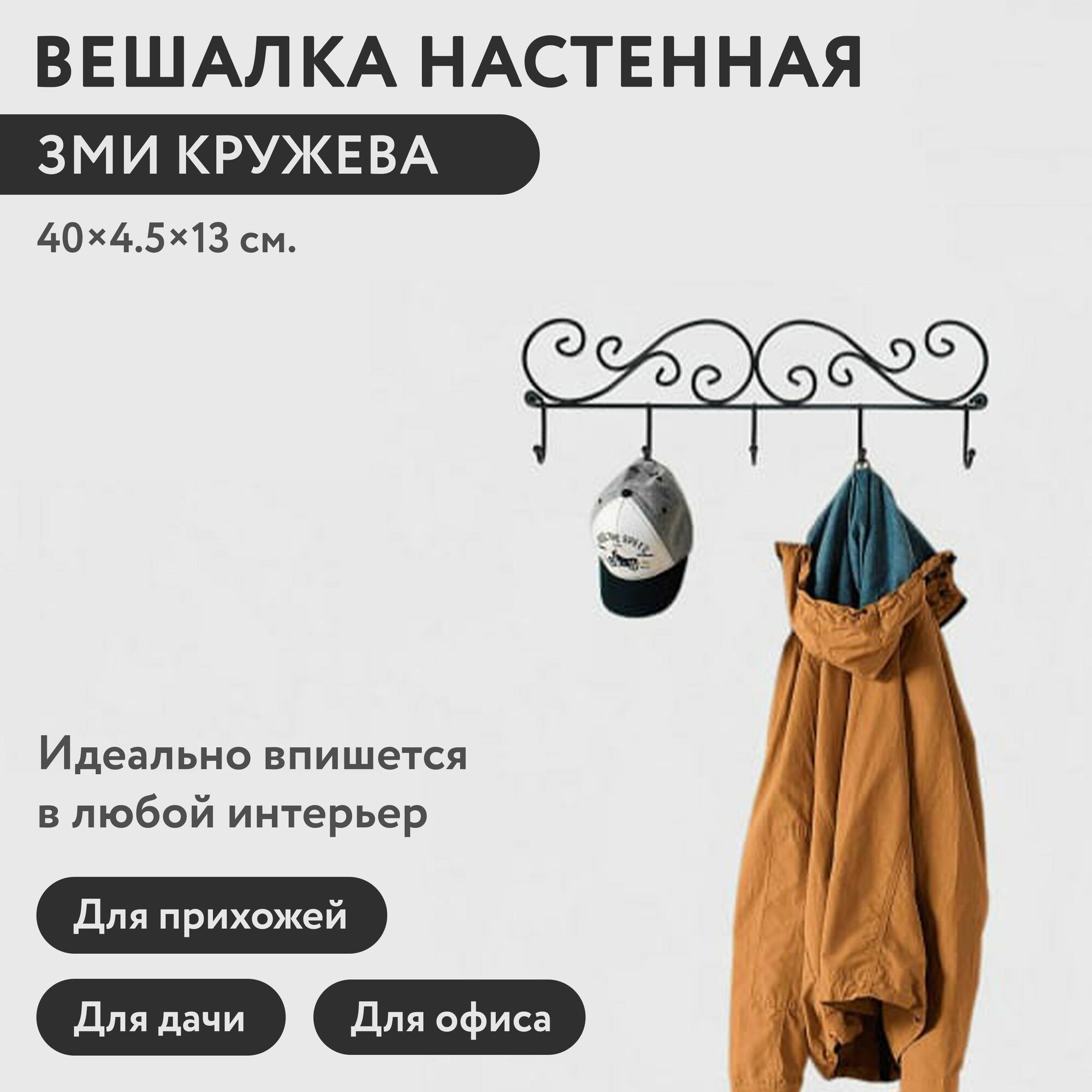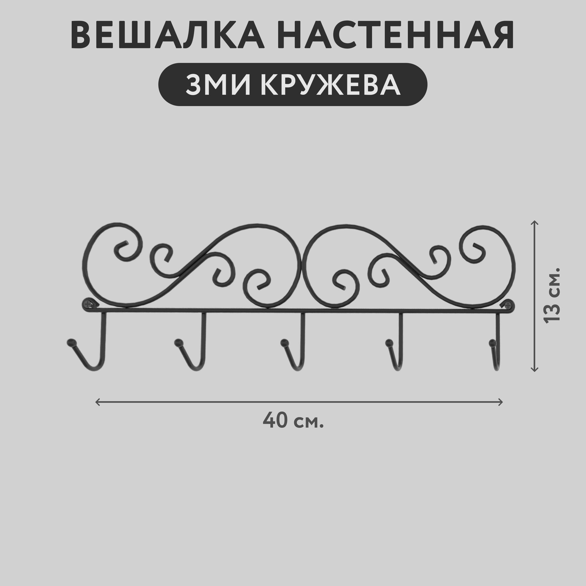 Вешалка настенная ЗМИ Кружева, 5 крючков, черная информация: