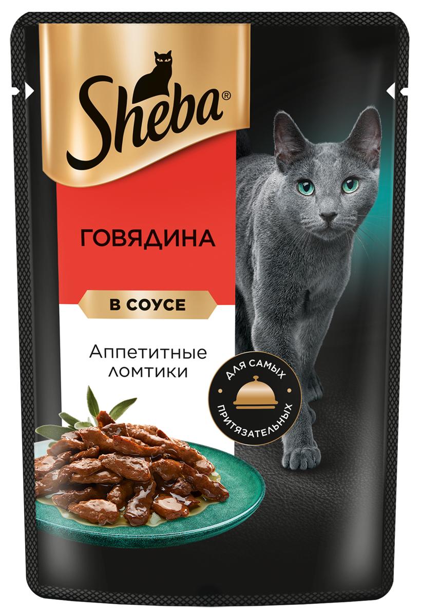 Sheba влажный корм для взрослых кошек всех пород, ломтики в соусе, говядина (24шт в уп) 85 гр