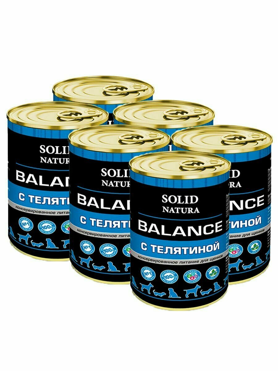10 цен на Solid Natura Balance влажный консервированный корм для щенков, с телятиной, 340г., 6 шт.