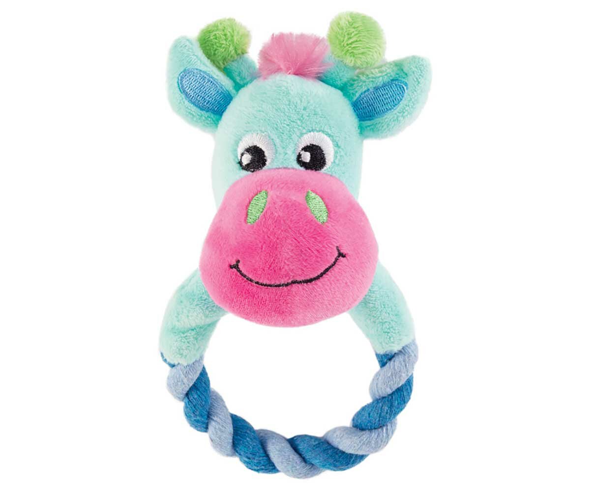 Мягкая игрушка для щенков Triol Жираф с кольцом, голубой, розовый, 17 см