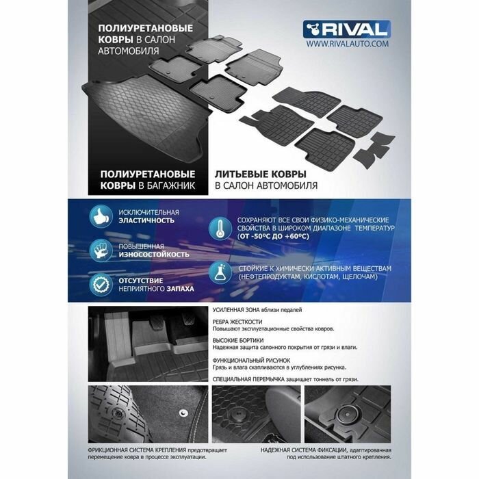 Коврики в салон Rival Lada Largus I рест. SW (5 мест) 2021-/Largus Cross I рест. SW (5 мест) 2021-, полиуретан, 16003005