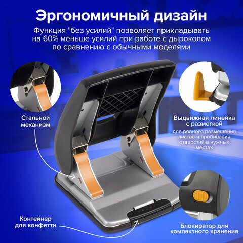 Дырокол энергосберегающий BRAUBERG "Easy Press", до 30 листов, без усилий, 224343 В комплекте: 1шт.