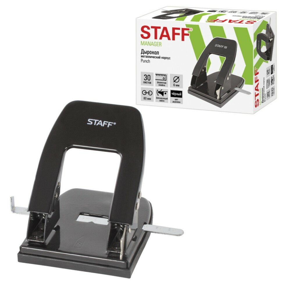 Дырокол металлический Staff "Manager", до 30 листов, черный, 224650 .