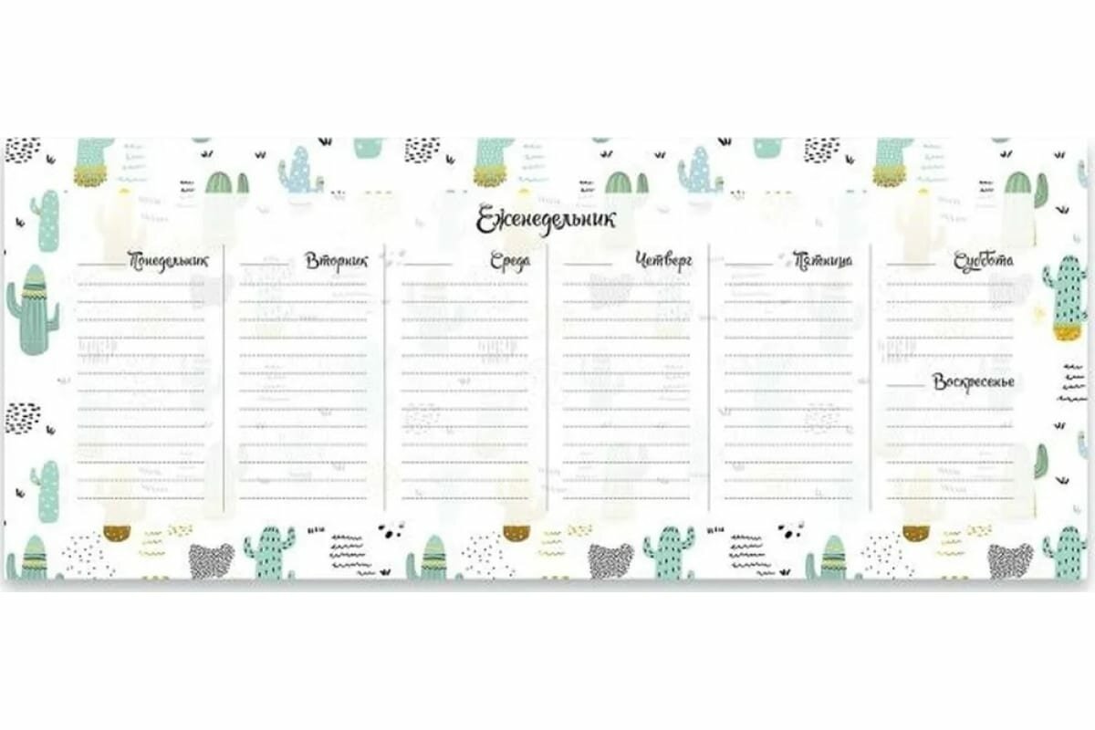 Планинг Феникс+ кактусы 297x115 мм, 55 листов, клеевое скрепление, блок 80 г, полноцветная печать, твёрдая подложка с кэшированием, полноцветная печать, скругление углов, ПЭТ запайка 49000