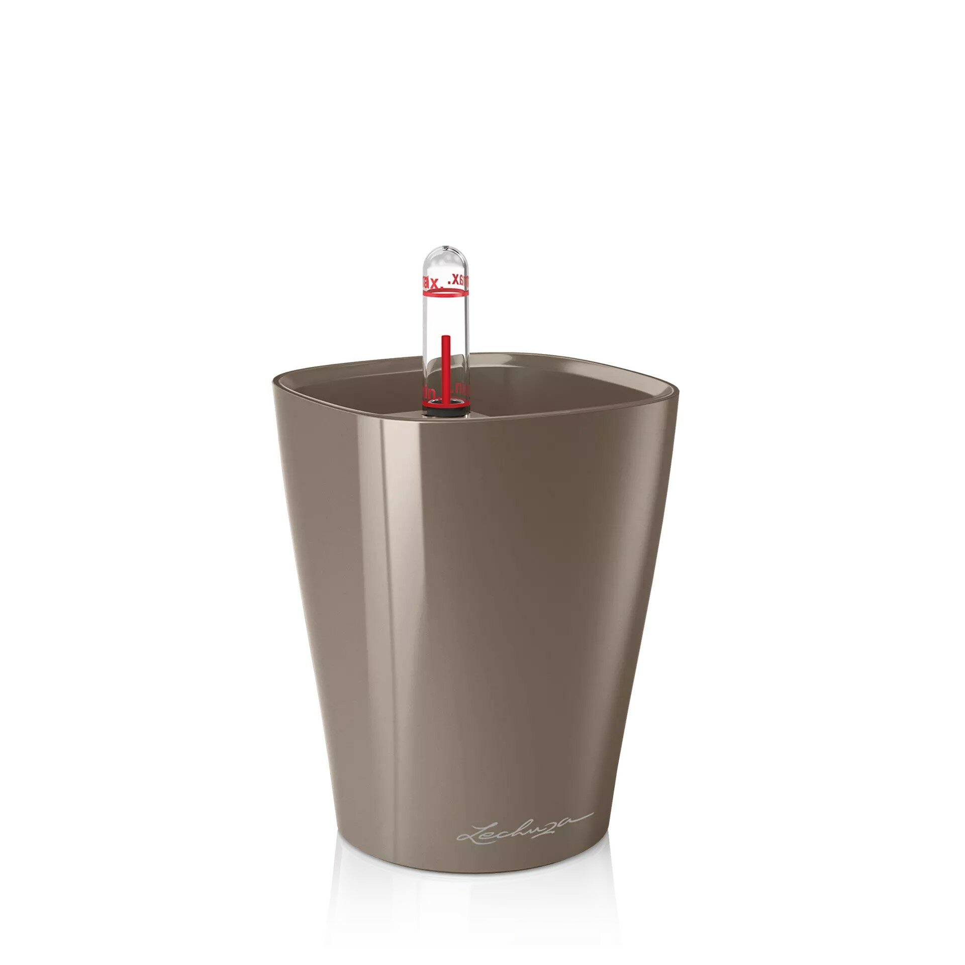 Кашпо с автополивом Lechuza MINI DELTINI Premium, L10 W10 H13 см, серо-коричневое глянцевое / горшок для цветов