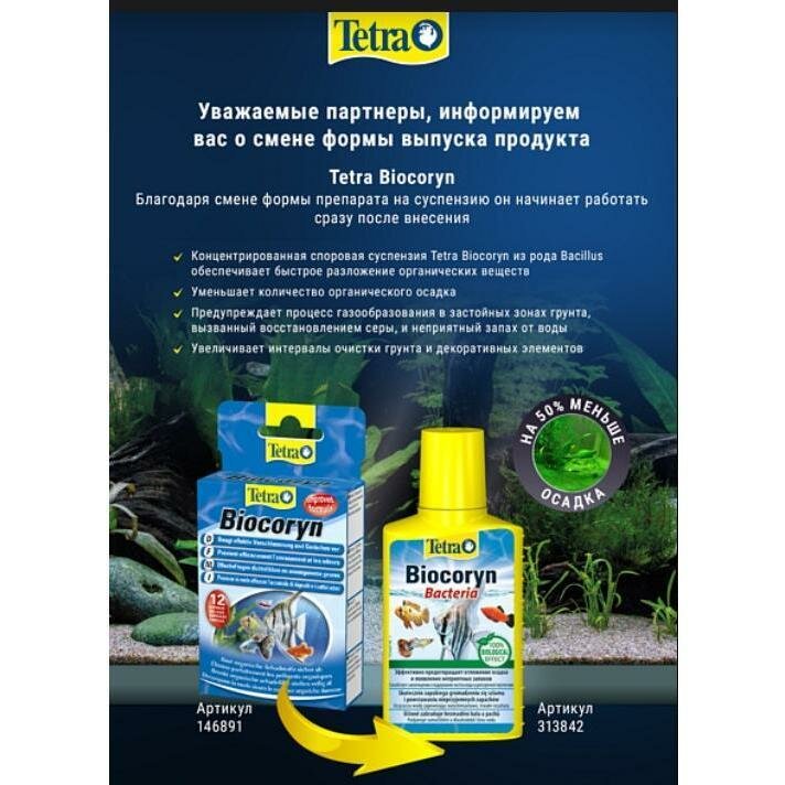 Кондиционер для разложения органики Tetra Biocoryn Bacteria 100мл на 400л информация: