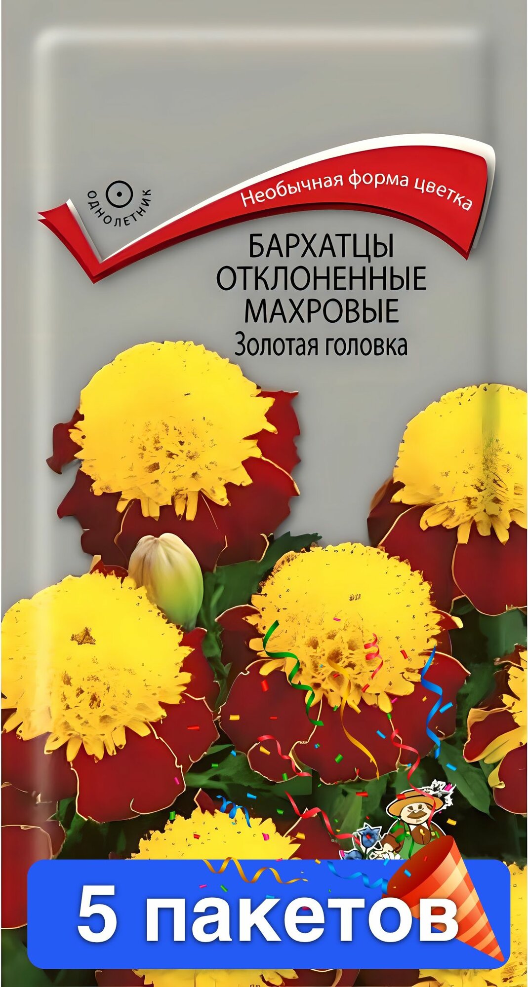 Цветы Бархатцы Золотая головка махровые 5 пакетов информация: