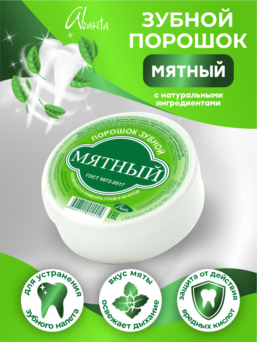 Зубной порошок Аванта Мятный с натуральными ингредиентами 1 шт. информация: