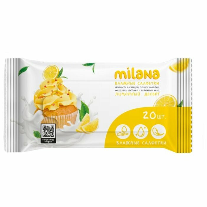 Влажные антибактериальные салфетки Milana Лимонный десерт (20 шт.)