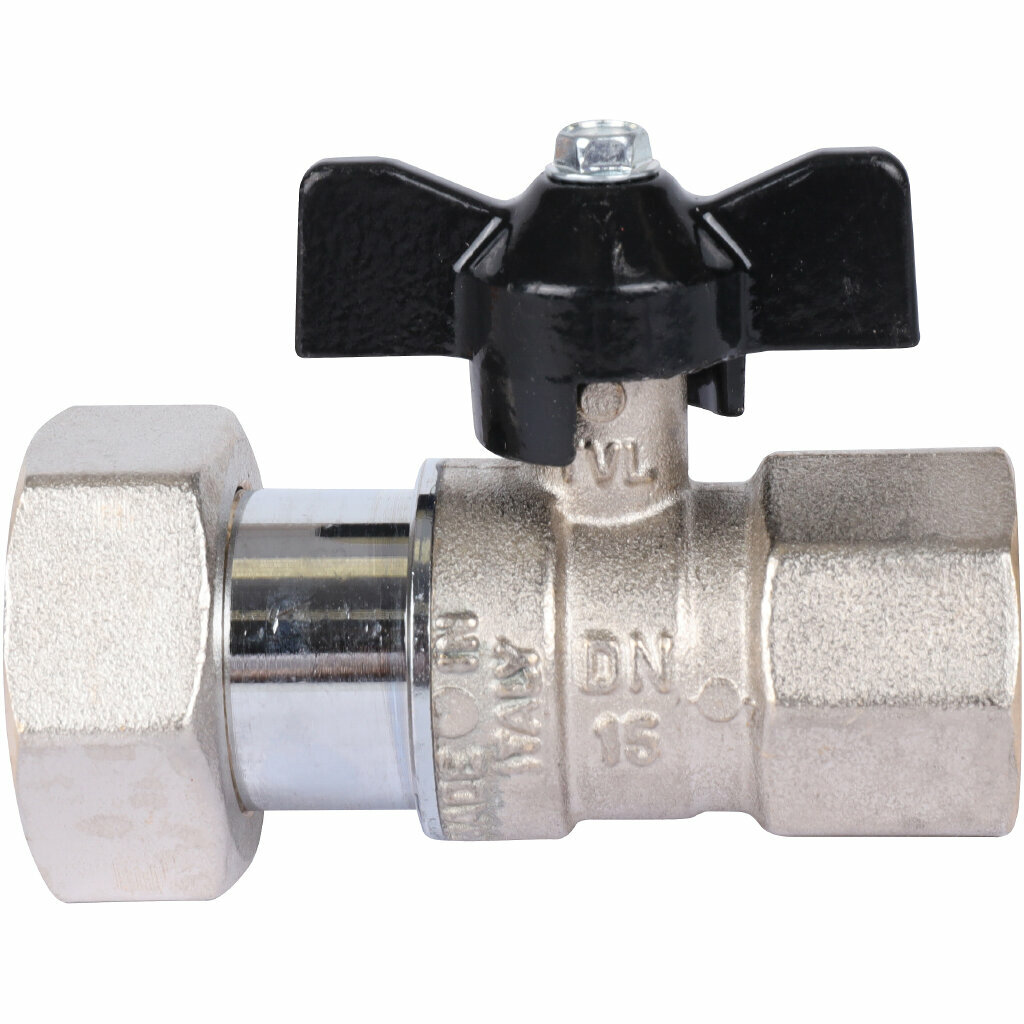 Кран шаровой с накидной гайкой, ВР/накидная гайка, ручка бабочка 1/2"x1/2"