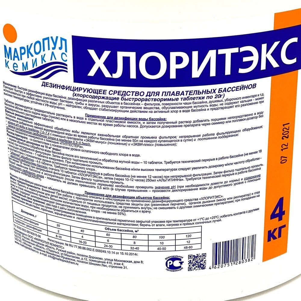 Хлоритэкс 4 кг, гранулы для дезинфекции воды, Маркопул кемиклс информация: