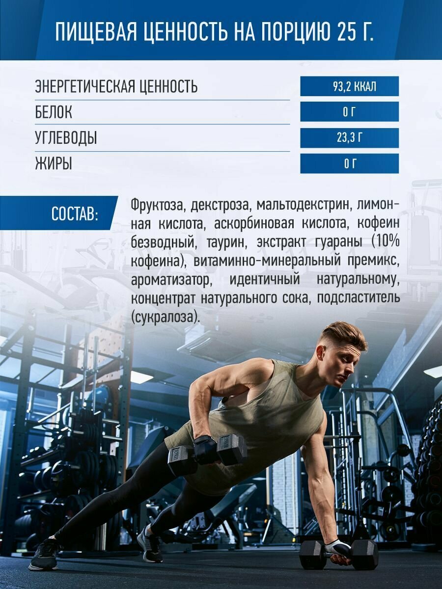 Изотоник с кофеином, таурином и гуараной RLINE ISO UP, Лимон, 450 г