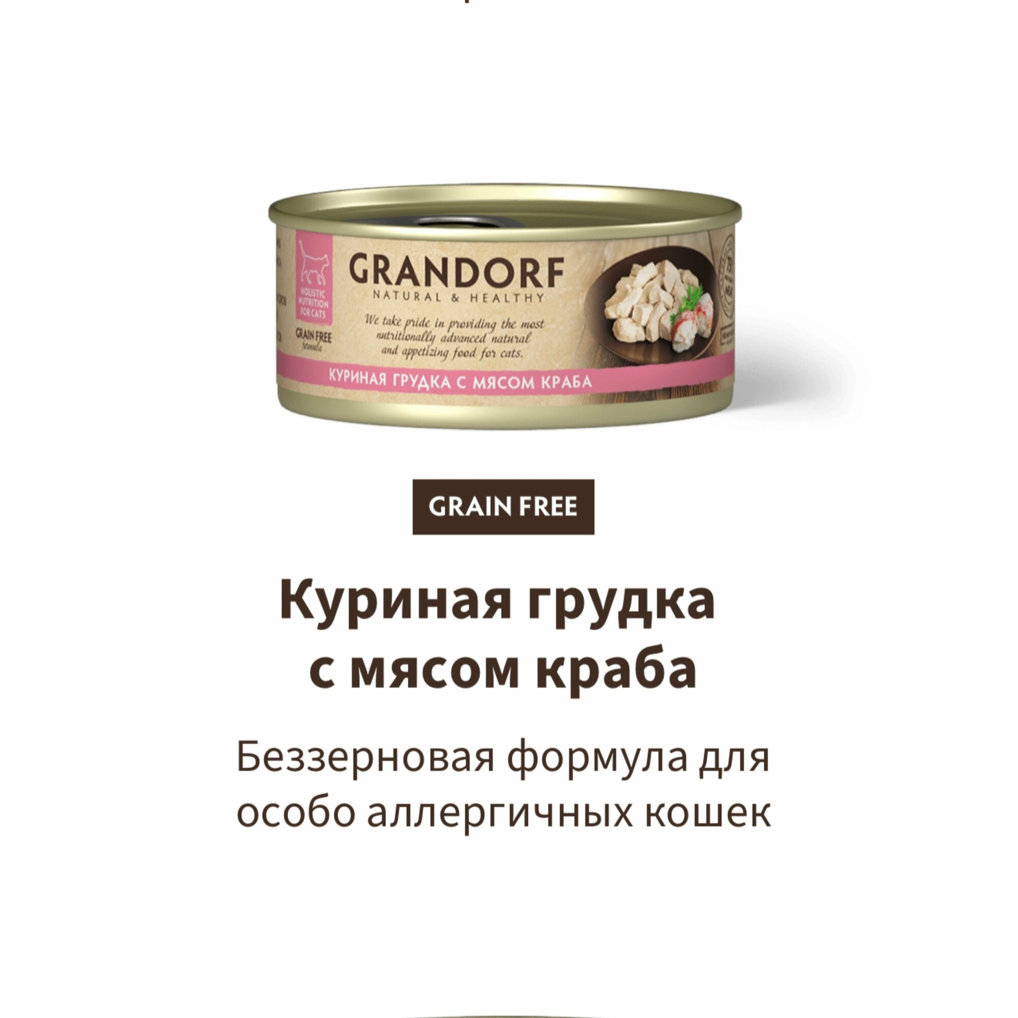 Влажный корм Grandorf консервы для кошек, Куриная грудка с мясом краба, 70 г. х 6 шт.
