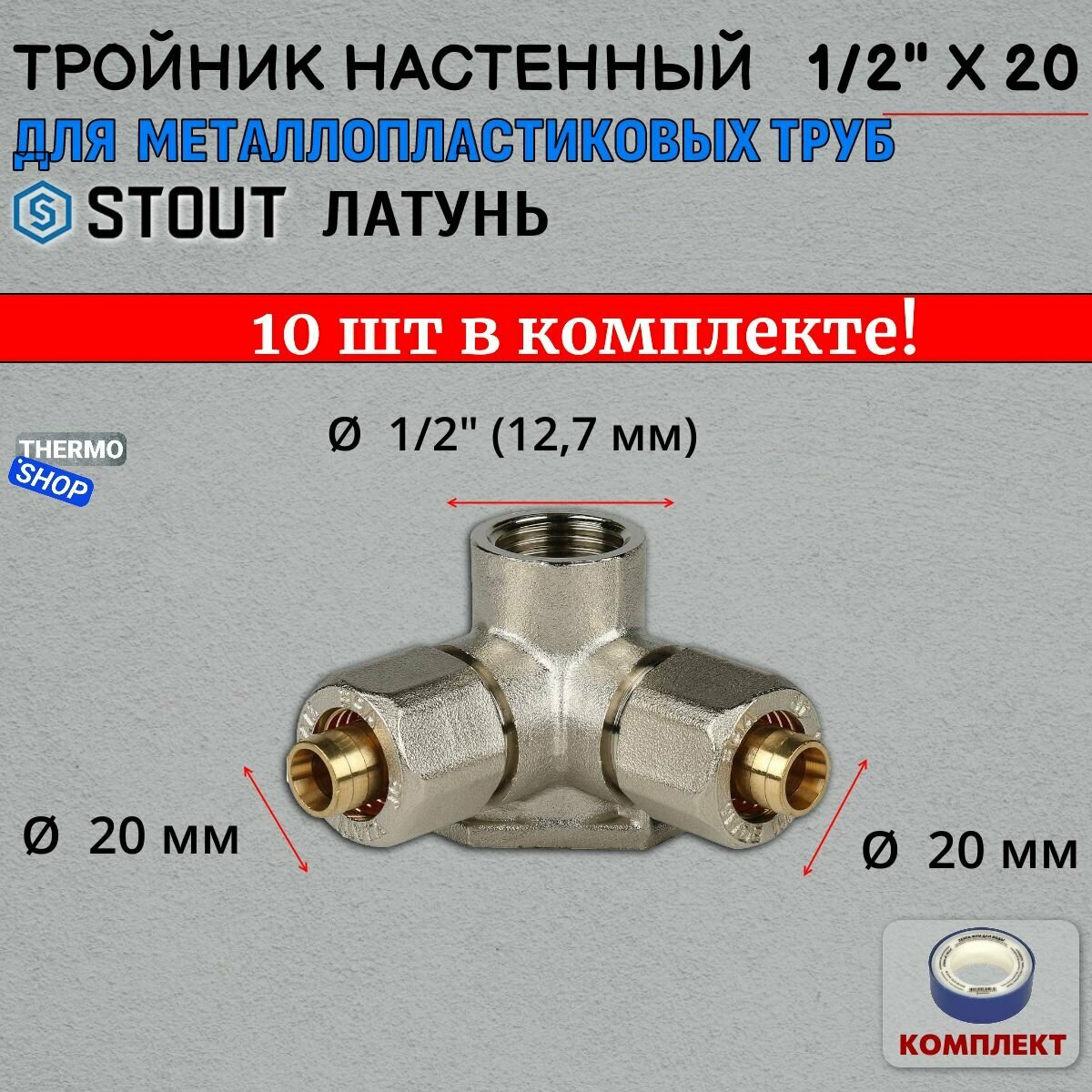 Тройник переходной 16x20x16 для металлопластиковых труб винтовой в комплекте 10 шт информация: