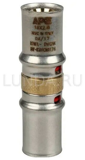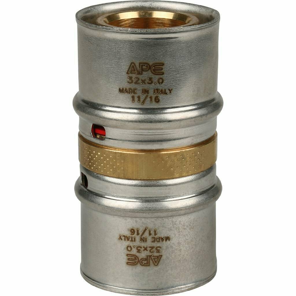 Муфта соединительная равнопроходная 32х32 для металлопластиковых труб прессовой ФУМ лента 10 м