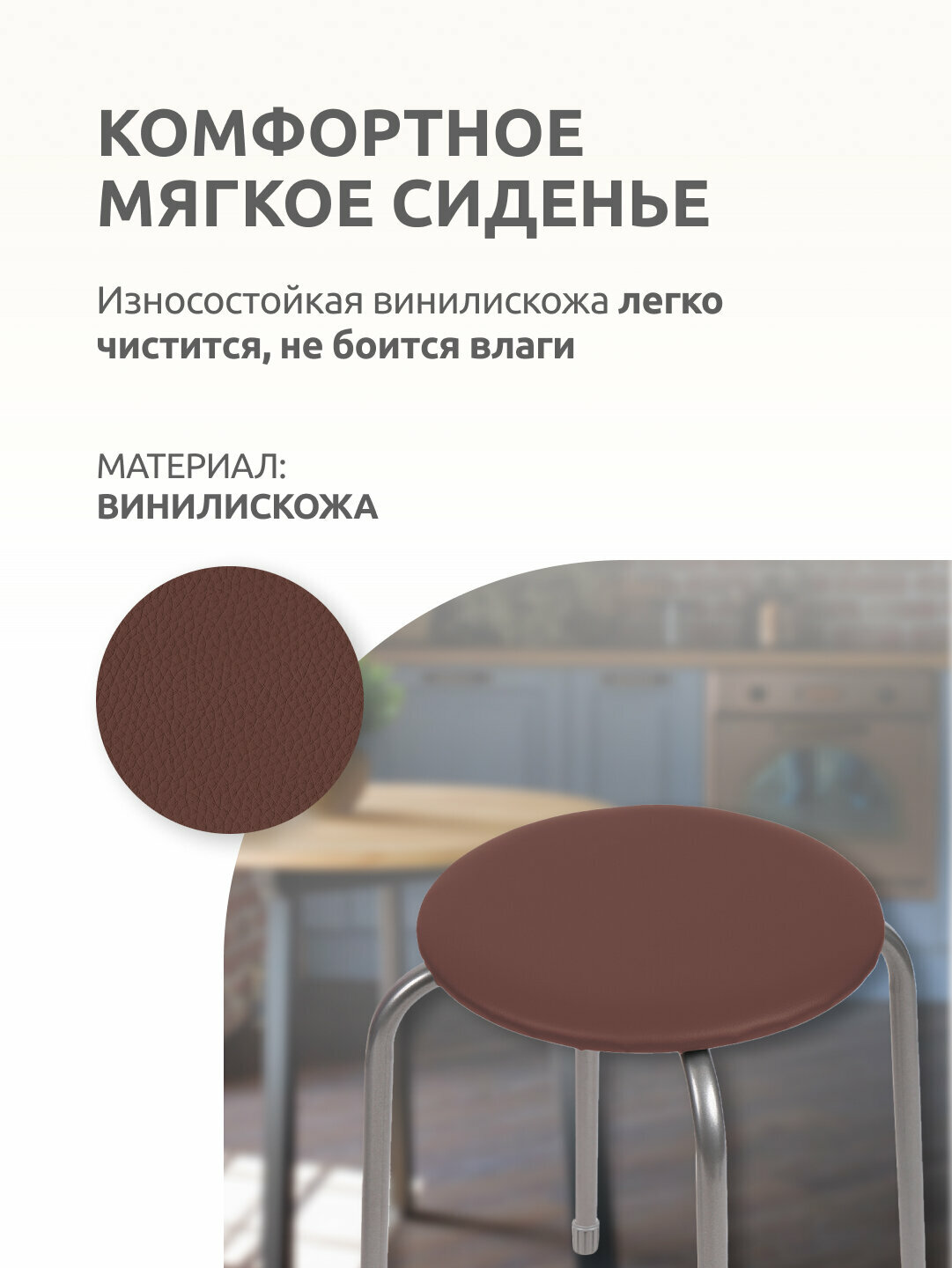 Табурет 320х465 мм, коричневый, сиденье круглое, винилискожа, на 4-х металл опорах, Nika, ТЭ2Р/К, разборный 1 177 ₽